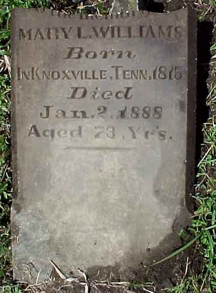 L. Williams, born in Knoxville, Tenn, 1815, died 2 Jan 2, 1888, aged 73 years