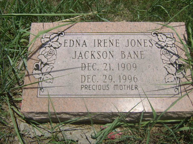 | Bane, Edna Irene Jones Jackson | Dec 21 1909 | Dec 29 1996 | “Mother” |