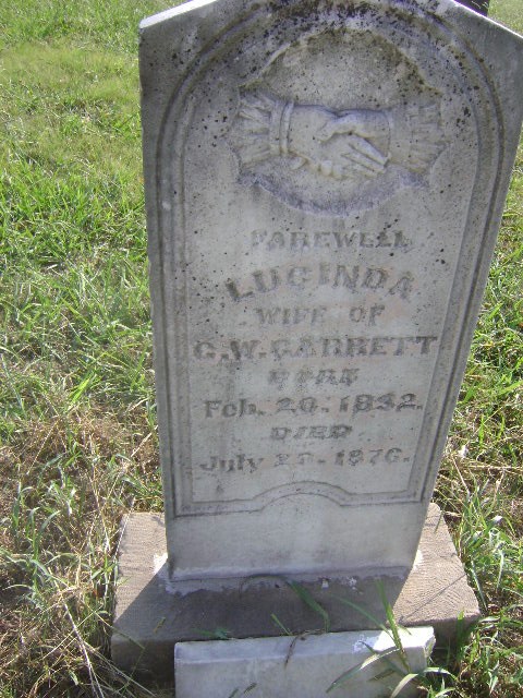 | Garrett, Lucinda | Feb 20 1832 | July 29 1876 | Wife of G.W. Garrett |
