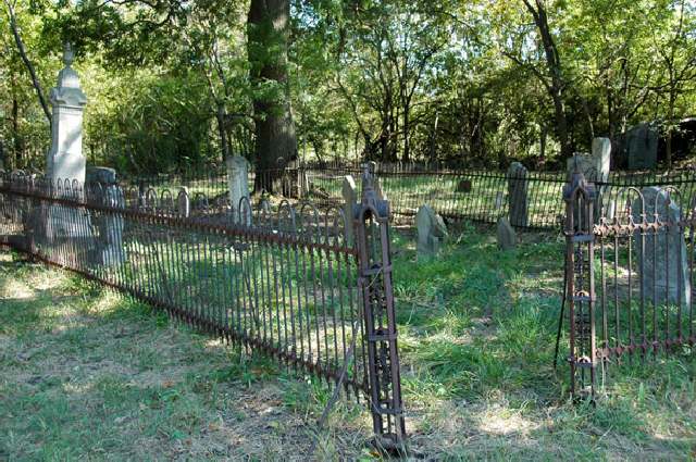 There is an iron fence enclosing about ten graves, mostly related to Daniel J. Franklin
