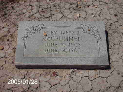 | McCrummen | Ruby Jarrell | 10 Jun 1903 | 14 Jun 1980 | Side section |