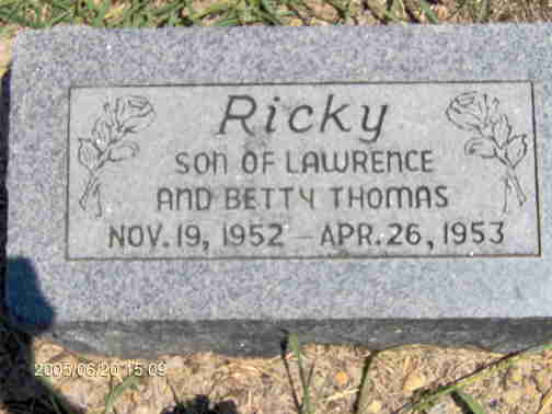 | Thomas, Ricky | Nov 19 1952 | Apr 26 1953 | S/o Lawrence & Betty Thomas |