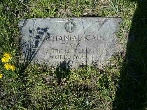 | Cain, Nathanial | Oct 6, 1887 | May 29, 1951 | Texas Pvt Medical Dept WWI |