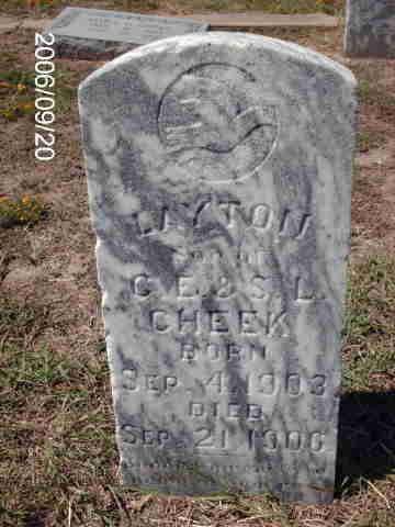 | Cheek, Layton | Sept 4 1903 | Sept 21 1906 | s/o C.E. & S.L. Cheek |