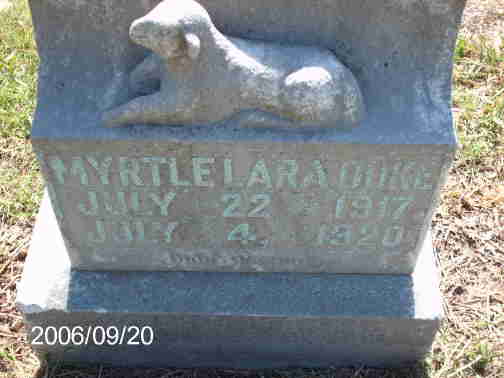 | Duke, Myrtle Lara | July 22 1917 | July 4 1920 | End 2nd row Elliott plot |