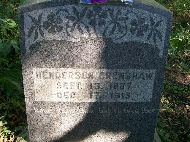 Cole | Hiram | 27 Dec 1833 | 29 Nov 1879 | s/w Clarissa Cole | FATHER | Cole | John | 21 Jun 1832 | 01 Oct 1903 | - | - | Cole | Seamon | 17 Jul 1871 | 09 Sep 1887 | s/o Hiram & Clara Cole | Gone but not forgotten- | Cooke | Eligah E. | 11 Feb 1881 | 01 Aug 1892 | s/o W.F. & S.E. Cook- | - | Corzine | Mariah J. | 18 Mar 1826 | 07 Sep 1892 | w/o P.B. Corzine | - | Corzine | P.B. | 09 Jun 1825 | 13 Apr 1893 | - | - | Craddock | Nannie May | 26 Ju 1881 | 24 Sep 1891 | d/o T.M. & O.C. | Shares marker with Thomas B. Craddock- | Craddock | Thomas B. | 17 Aug 1889 | 24 Aug 1889 | s/o T.M & O.C. | Shares marker with Nannie May Craddock | Crenshaw | Carrie B. | 13 Nov 1897 | 15 Sep 1912 | d/o C & J.B. Crenshaw | - | Crenshaw | Henderson | 13 Sep 1887 | 17 Dec 1915 | Woodsmen of the World | None knew thee but to love thee | Cress | Willie Oge | 26 dec 1885 | 17 Nov 1886 | d/o W.G. & A.Z. Cress | - | Davenport | Gasen G. | 07 May 1875 | 02 Oct 1894 | s/o W.L. & N. Davenport | - |