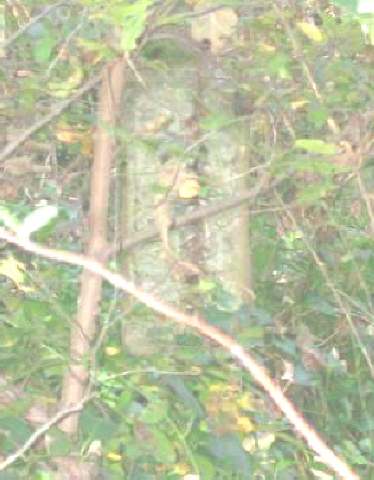 This is a very smooth marker straight ahead of JOE SMITH DRIVER, possibly turned around to face the tree it is leaning against. Stone is collapsed and may have been moved intentionally, leaning against a tree, illegible - as it standing now). - |