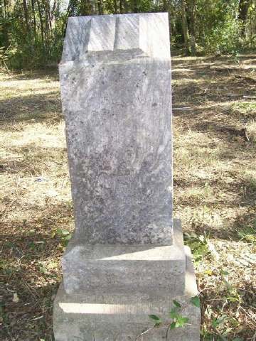 Moorman | Belle M. | 19 sep 1861 | 06 Jun 1887 | w/o D.M. Moorman | Top of marker is broken off and missing- | Morris | Son | 10 Mar 1882 | 17 Aug 1882 | s/o R.L & M.C. Morris | - | Mosteller | Sammie | 18 Jan 1894 | 16 Apr 1894 | s/o J.O. & M.J Mosteller | - | Motley | Joseph Allen | -- dec 1887 | 04 Apr 1888 | s/o J.T. & E.M. Motley | b:Smithville TN d:Kingston TX | Moudy | Sarah M. | 1825 | 03 Mar 1900- | - | - | Nix | Infant Son | 08 Feb 1904 | 23 Mar 1904 | Marker is broken and lying on the ground | Buded on earth to bloom in heaven | R.P.P | footstone | - | - | Between Mary E. & Sallie B. Woodard | Footstone with the initials R.P.P. Headstone is missing | Perry | R. Parker | 21 Nov 1885 | 14 Jan 1897 | - | Of such is the kingdom of heaven | Phillips | S.E. . | 08 Aug 1862 | 06 Oct 1874 | w/o A.J. Phillips | I have found the shores of everlasting rest"In my Father's house are many mansions- | Phillips | Thomas P. | -- Jan- ---- | 14 Aug 1881- | - | Blessed are the pure of heart for they shall see God | Ramsey | Maud Lucile | 01 Apr 1898 | 14 Jun 1898 | d/o W.H. & M.D. Ramsey- | - | R-gan | George | 29 Sep 1875 | 02 Nov 1887 | Marker is lying in pieces | - | Rhea | Elizabeth | 20 Jun 1814 | 02 Nov 1885 | - | - | Rhea | J.C. | 17 Dec 1852 | 03 Jan 1881 | - | - | Rhea | John T. | 30 Nov 1852 | 07 Oct 1894 | - | - | Rhea | Lou Della | 15 Apr 1850 | 26 Oct 1850 | This stone is overturned and partially buried | - | Schmitz | Alenander H. | 10 Jun 1885 | 31 Oct 1892 | s/o W.J. & S.E. Schmitz | - | Schmitz | Lula M. | 18 Jul 1888 | 09 Jan 1898 | d/o W.J. & S.E. Schmitz | - | Shatley | Infant | 07 Dec 1888 | 07 Dec 1888 | Infant/o J.A. & X.L. Shatley; Marker is partially buried | "Here lies our baby sweet and dear as blessed as an angel be" | Shatley | John | 03 Aug 1817 | 11 Jul 1892 | - | May he rest in peace | Shatley | Millie | 16 Jun 1838 | 10 Aug 1897 | w/o J.L. Shatley | In the bright eternal city Death can never, never come | Shatley | S.A. | 06 Jul 1822 | 18 Oct 1911 | w/o John Shatley Marker is leaning & in danger of falling over- | We will meet again | Shatley | W.L. | 17 Oct 1851 | 25 May 1891 | Stone is toppled and lying on the ground- | - | Singleton | J.H. | - | -- Nov 1877 | Stone has shifted in the soil in which it rests | E 18 Y | Singleton | Mary E. | - | -- Mar 1818 | - | E 44 Y | Smith | Annie | 20 Jul 1881 | 12 Sep 1882 | d/o D.G. & E.G. | Infant |