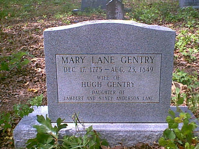 | Gentry | Mary Lane | Dec 17 1775 | Aug 23 1849 | - | - | w/o Hugh, d/o Lambeth & Nancy mother of Sam |