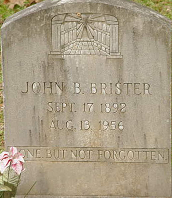 Brister, John B b 17 Sep 1892 d 13 Aug 1956