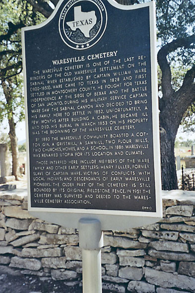 Ware came to Texas in 1828 and first settled in Montgomery County.